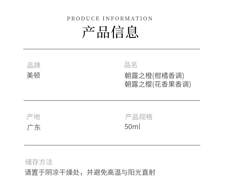美頓朝露之櫻朝露之橙女士淡香水小眾魅力自然持久留香